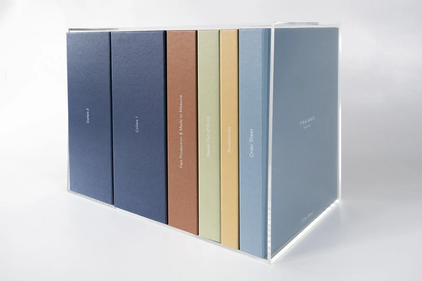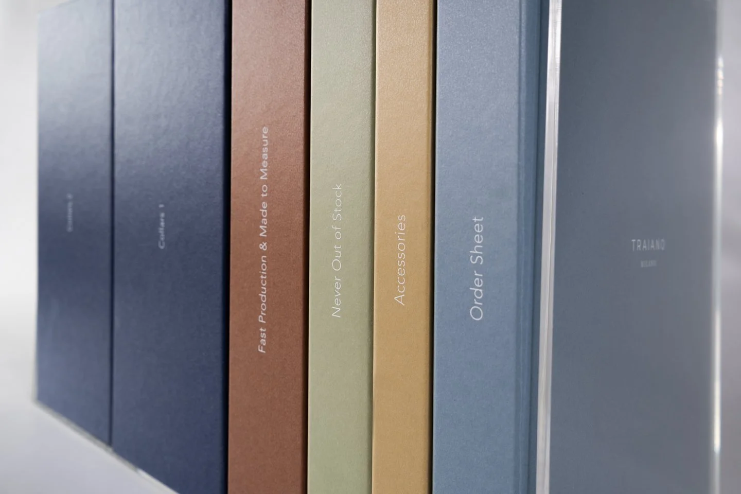 Traiano MilanoRicercate textures di carta rivestono un set di vendita per una prestigiosa camiceria. I colori pastello e le carte opache interpretano la moderna e sofisticata eleganza del brand.